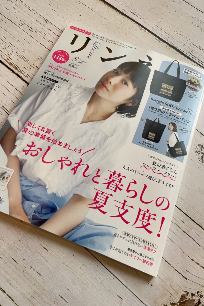 宝島社リンネル 2023年8月号に掲載されました。