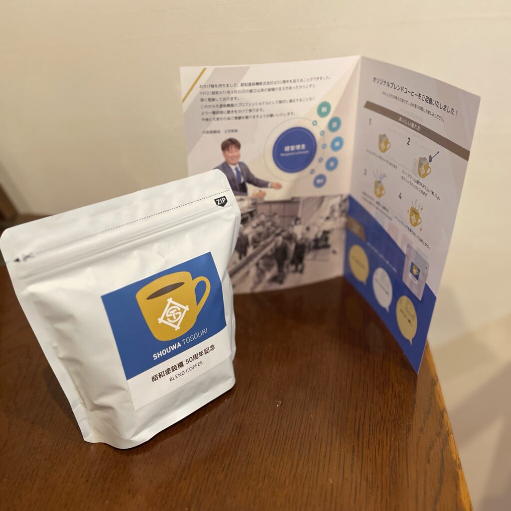 昭和塗装機(株)様50周年記念ノベルティとしての、オリジナルブレンドコーヒーの企画。