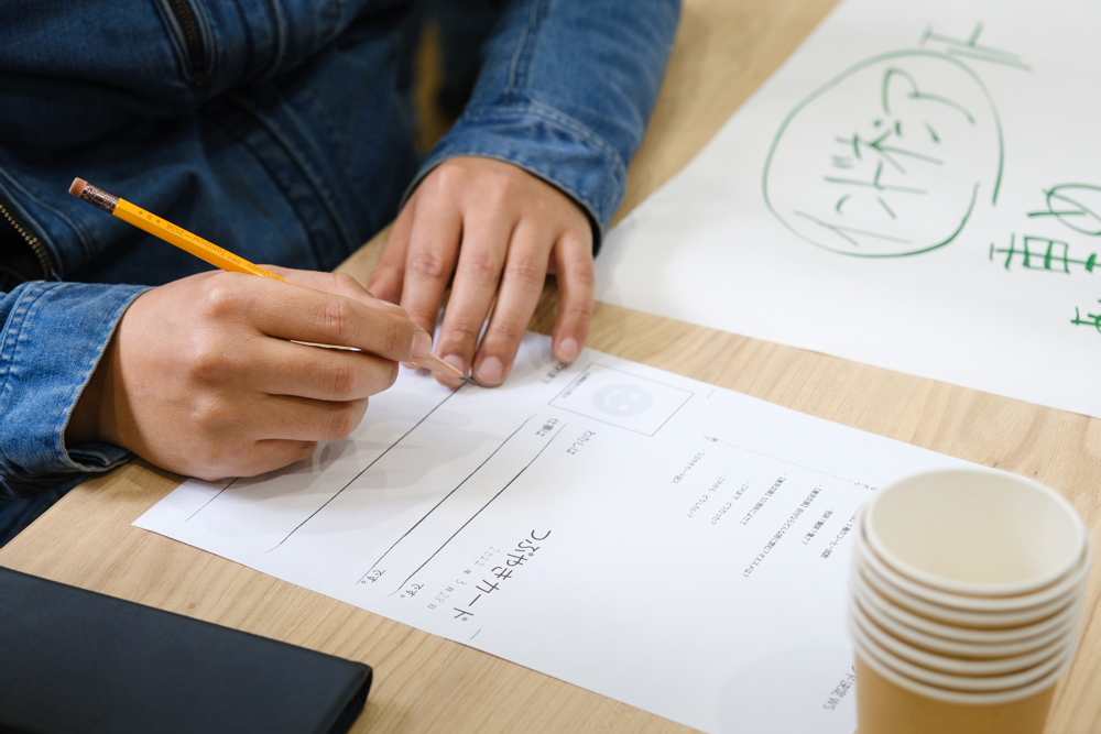 などの意見が出ました。自分たちの会社のイメージに合うものを絞り込んでいってもらい…